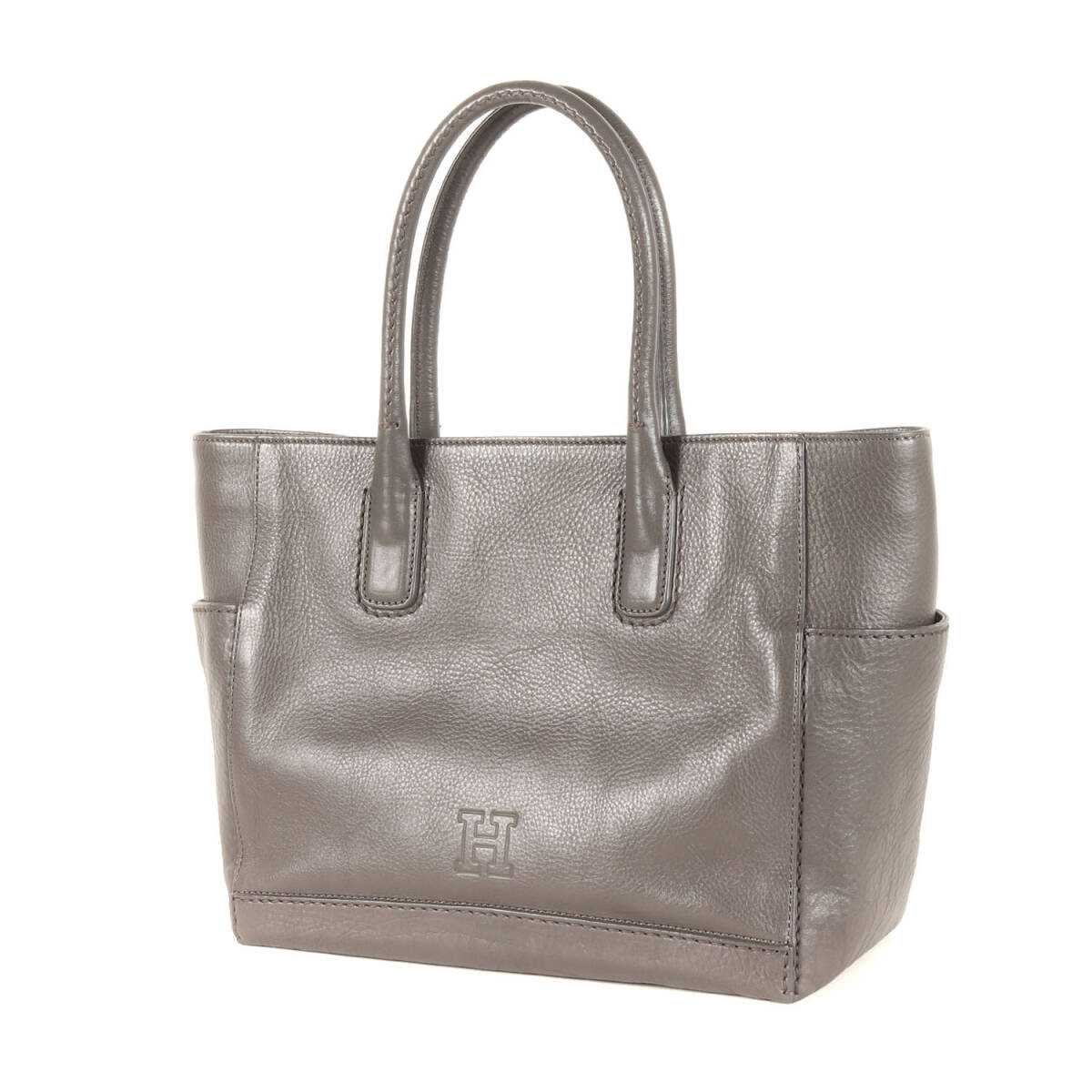 HIROFU ヒロフ バッグ ダークグレー | デュオ レザー トートバッグ / ビジネスバッグ | 肩掛け ブランドロゴ ステッチ 本革 | イタリア製 收藏