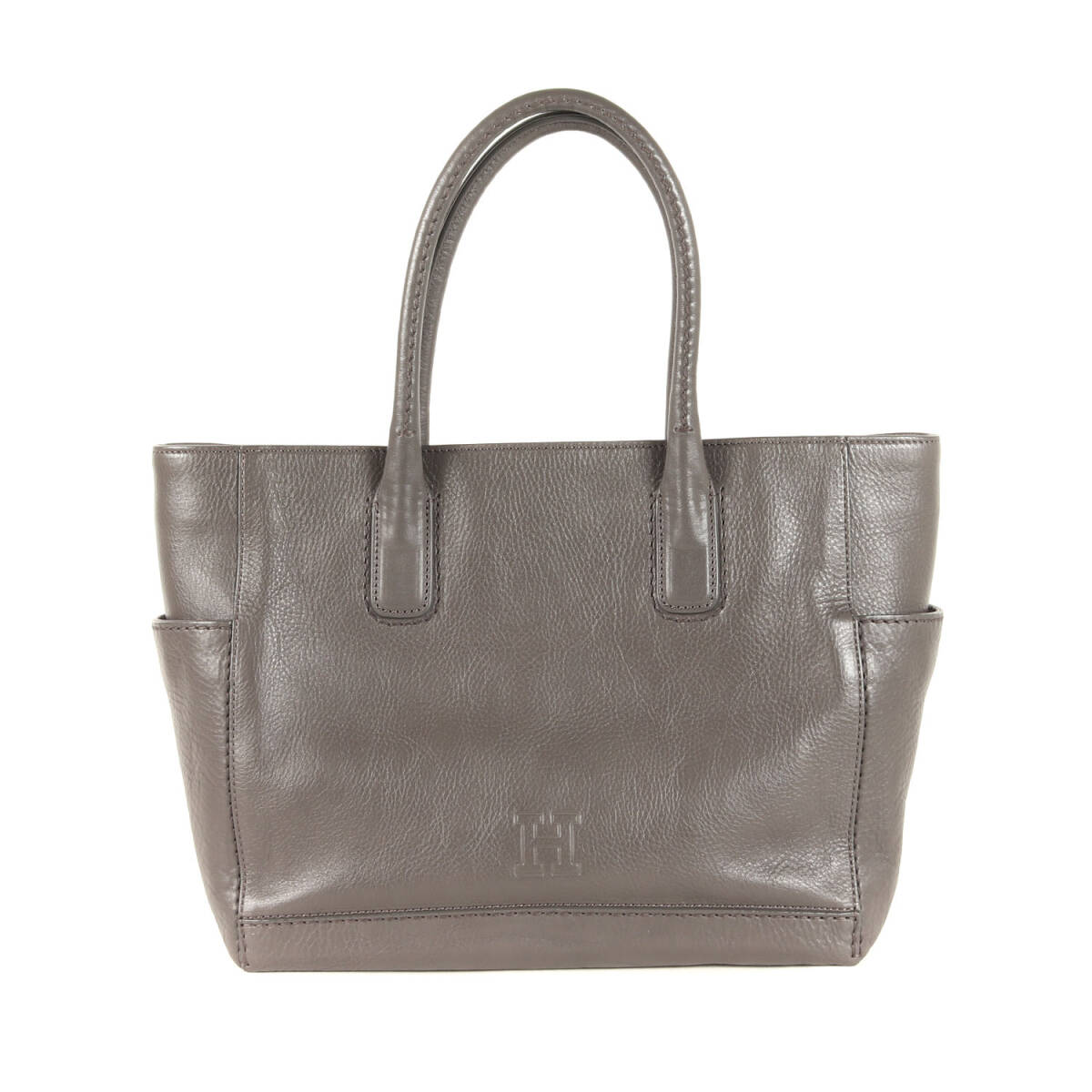 HIROFU ヒロフ バッグ ダークグレー | デュオ レザー トートバッグ / ビジネスバッグ | 肩掛け ブランドロゴ ステッチ 本革 | イタリア製