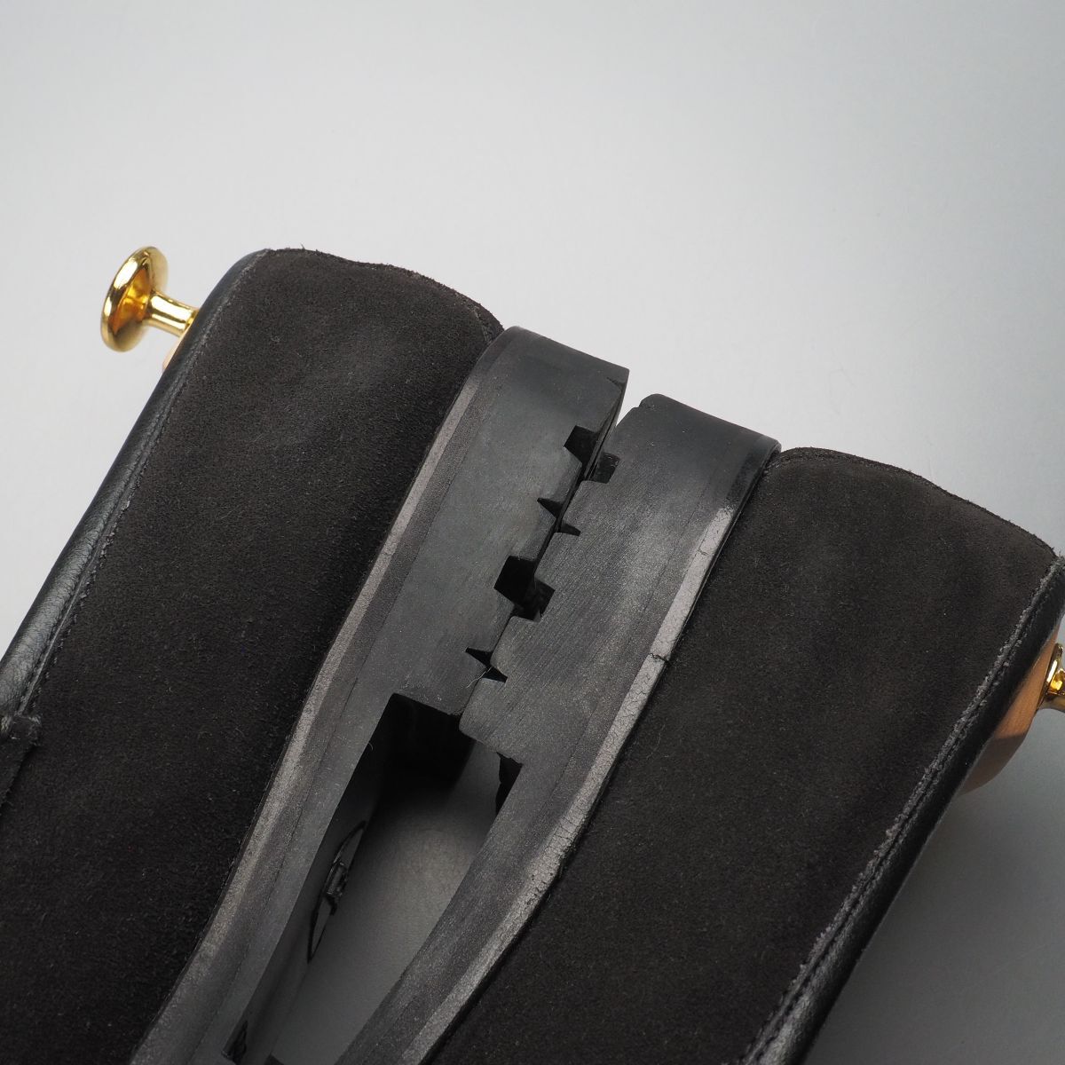 | サイズ | 表記サイズ:7.5B(※Bウィズのためか表記よりも小さく感じられます) (弊社スタッフが試し履きしてみたところ、「23cm」程の方に丁度良いかと思われます) ※サイズに関しては足の甲の高さや幅等に個人差があるため、取り扱い正規店で同サイズの靴の試着をして頂くことをおすすめしています。 実寸サイズ アウトソール全長:約28.5cm アウトソール最大幅:約10.5cm ヒール高さ:約2.5cm | ||