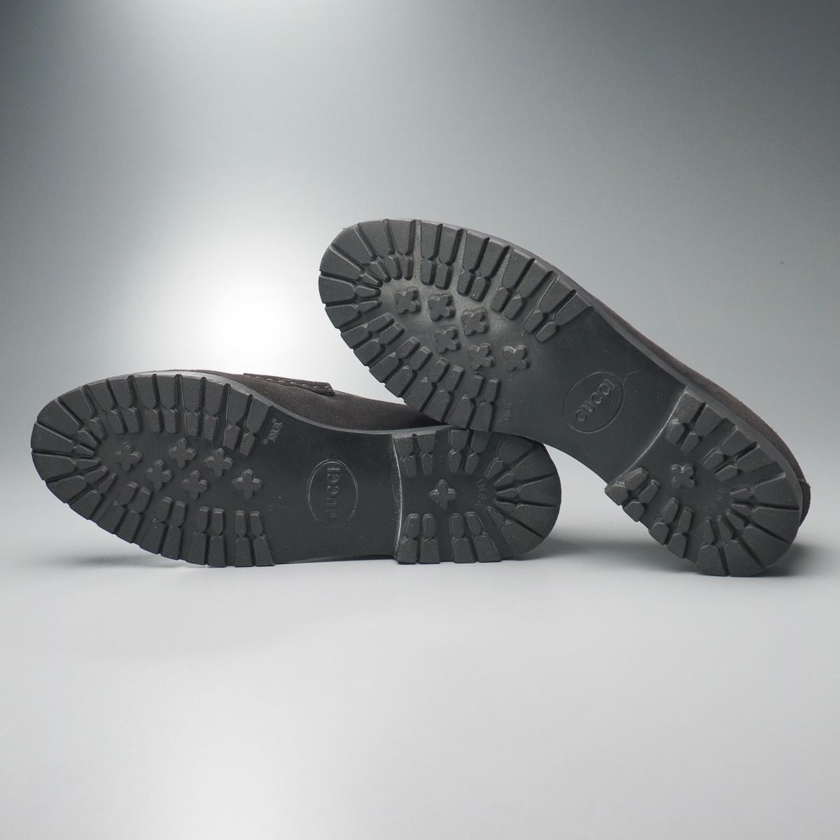 | コンディション | 【コンディション詳細】 トゥやかかと周りなどにやや薄い擦れ、またインソールやライニングに少々薄い擦れや薄い汚れが見られますが、ほか目立つようなダメージなどは見られません、これからも気持ちよくご愛用頂ける良いコンディションです。 アウトソールの減りはトゥで1mm程度、ヒールで3mm程度です。 | ||
