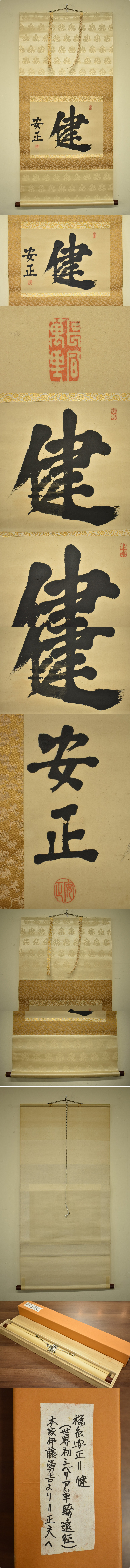 竜K744◆模写 掛軸 旧日本軍 陸軍大将 福島安正 書 健 紙本 男爵 満州軍 参謀 軍人 軍物 茶掛け 收藏