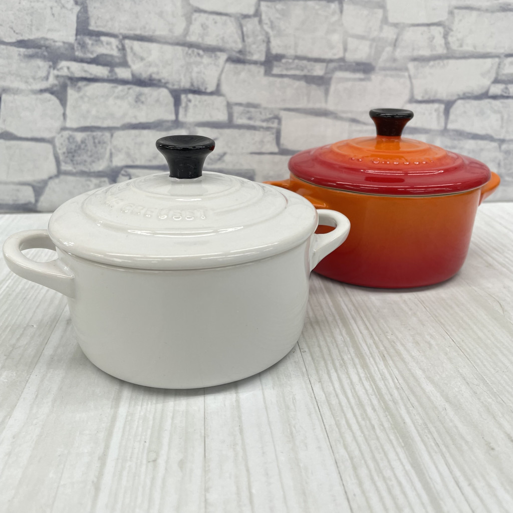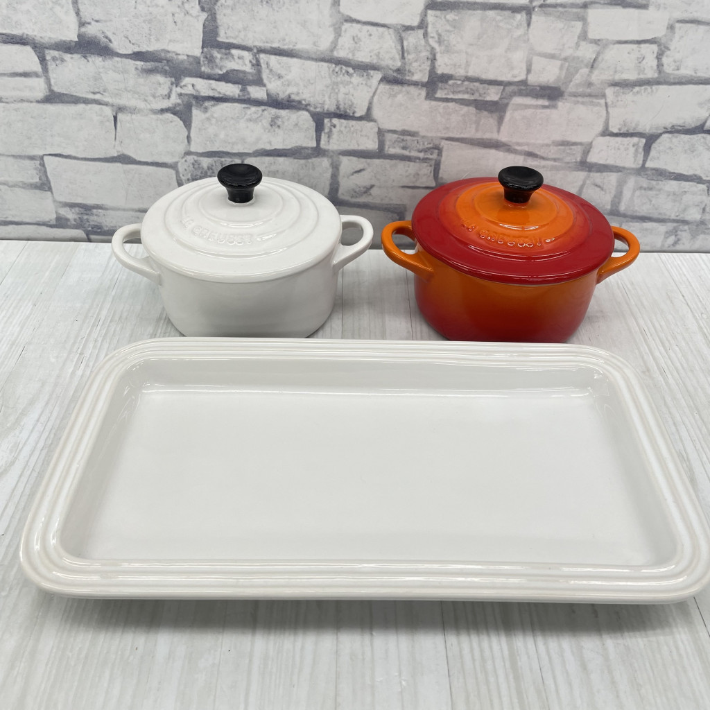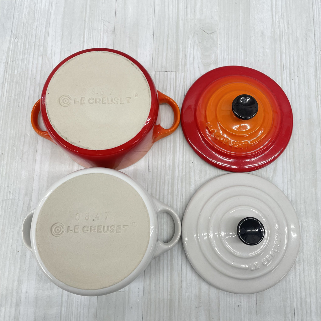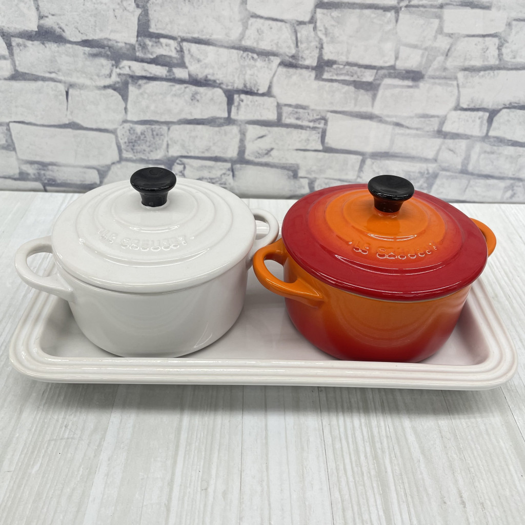 ▲LE CREUSET ル・クルーゼ ミニココットロンド 2個 プレートセット オレンジ ホワイト KN221806 收藏