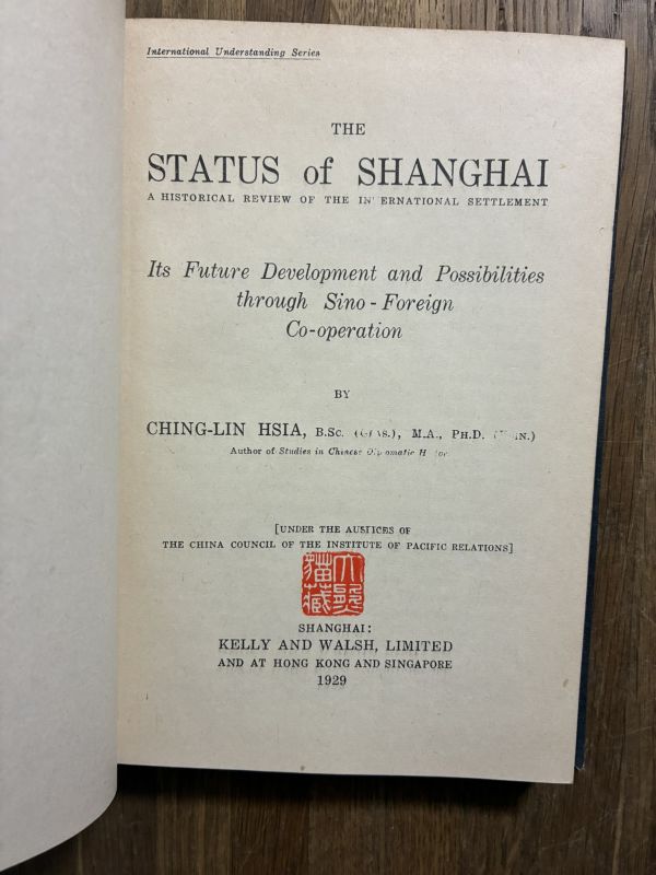 Ching-Lin Hsia The Status of Shanghai|上海租界史・国際都市史・中外関係|1929年 上海刊 Kelly & Walsh 洋書古書 收藏