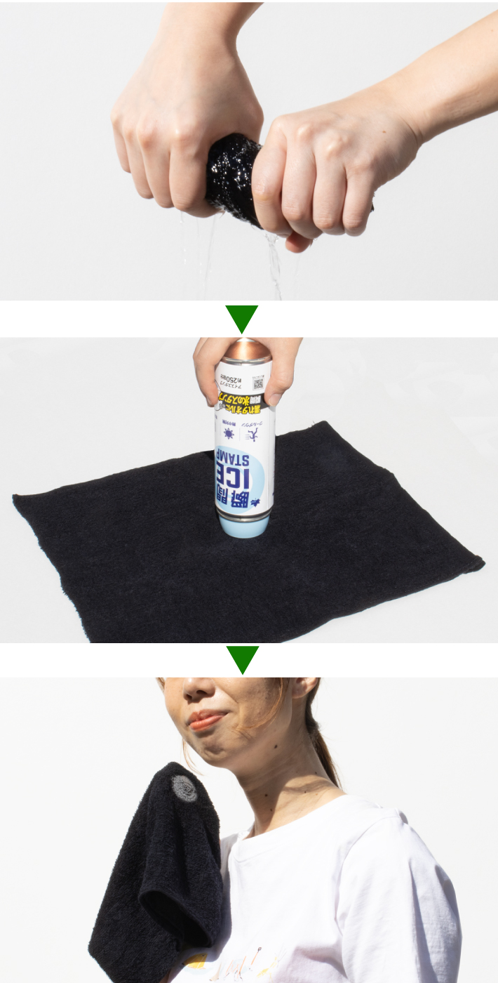 ・濡れタオルに氷のスタンプ。携行性に優れたポケットサイズ。