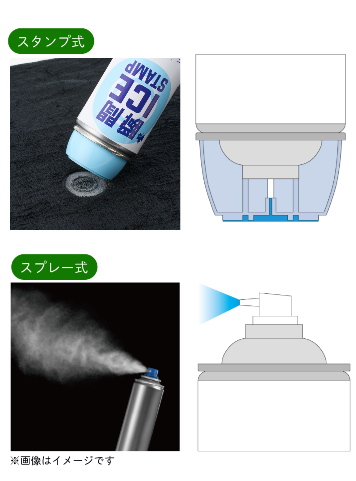 スタンプ式氷結により冷却剤が散布しないため、使用時に周囲の人に迷惑をかける心配がありません。