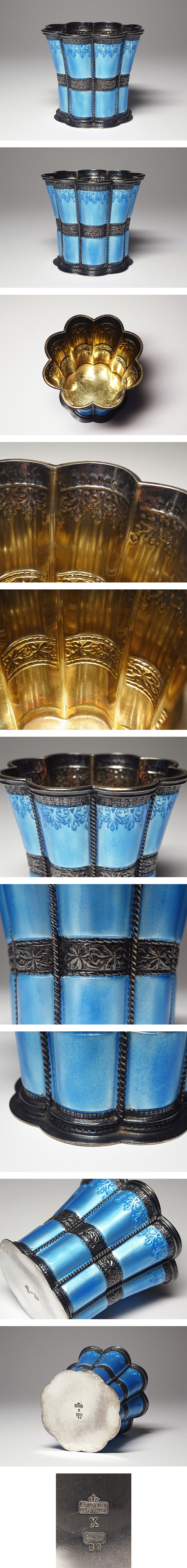 慶應◆デンマーク王室御用達【A・ミカエルセン工房】製 エナメル装飾 スターリングシルバー製カップ アンティークジュエリー 收藏