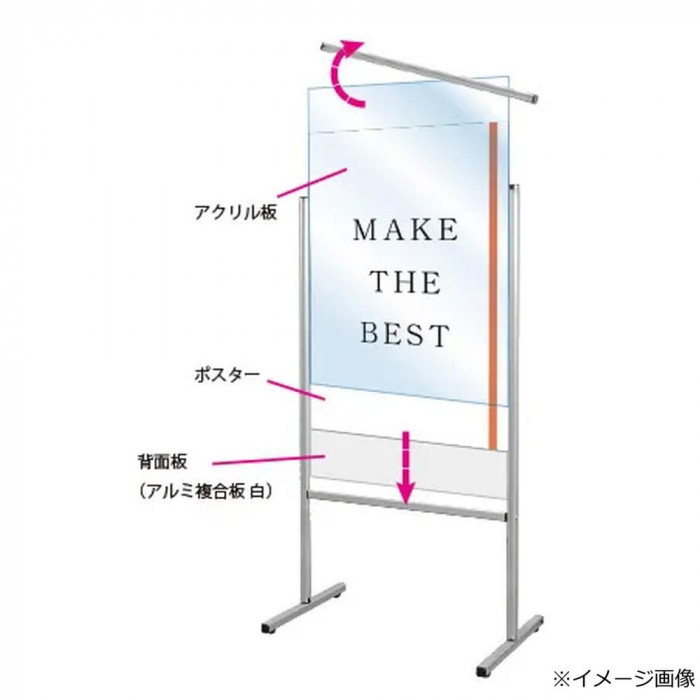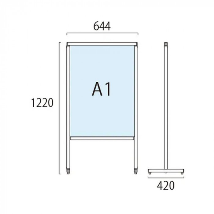 | フォーマルな情報発信に最適で省スペースにも設置できる直立型スタンドです。 ※屋内・屋外可(ポスターには耐水加工が必要です) |