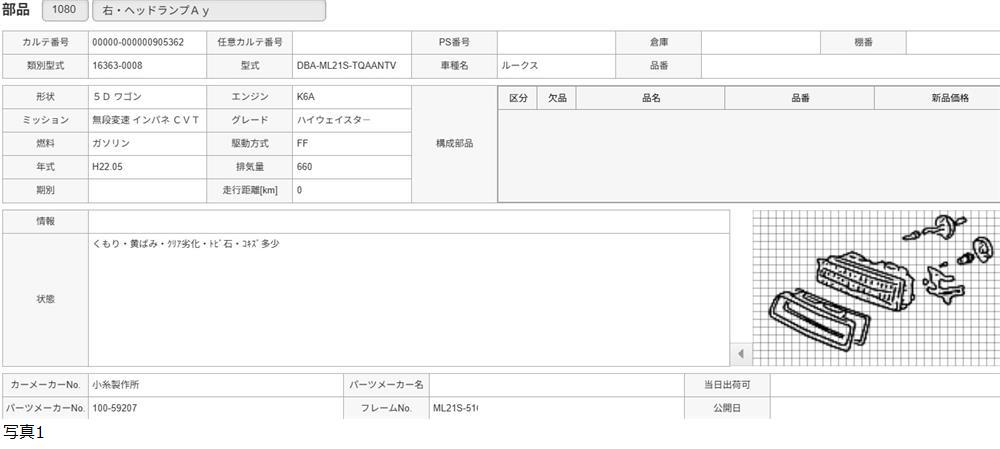 H22年 ML21S ルークス ハイウェイスター 右 ヘッドライト コイト 100-59207/送料 ミニ/905362 收藏
