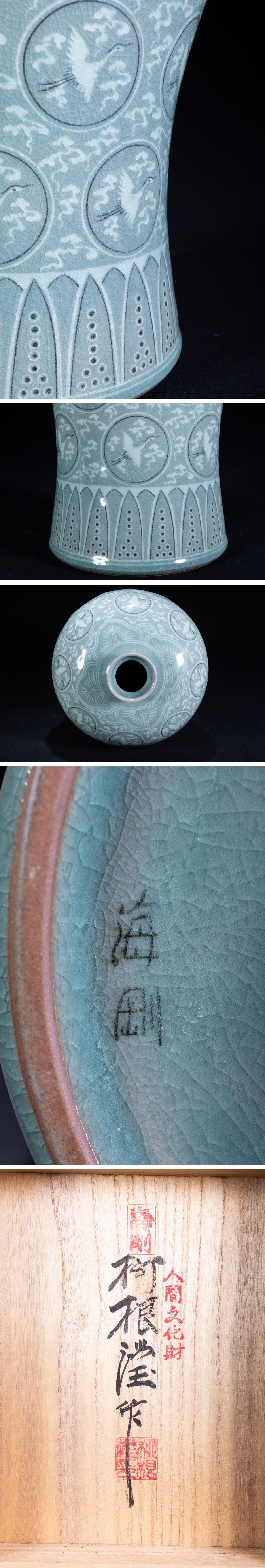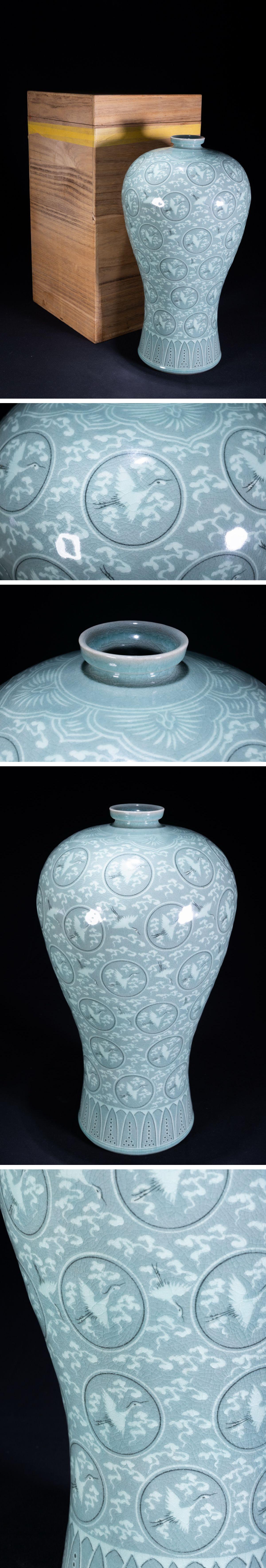【珍品堂】1円から 高麗 李朝 人間国宝 無形文化財 柳海剛 ((柳根瀅))共箱 大花瓶 飾り壺 韓国 時代物 H44.2cm M-B57QQ-CG3 收藏
