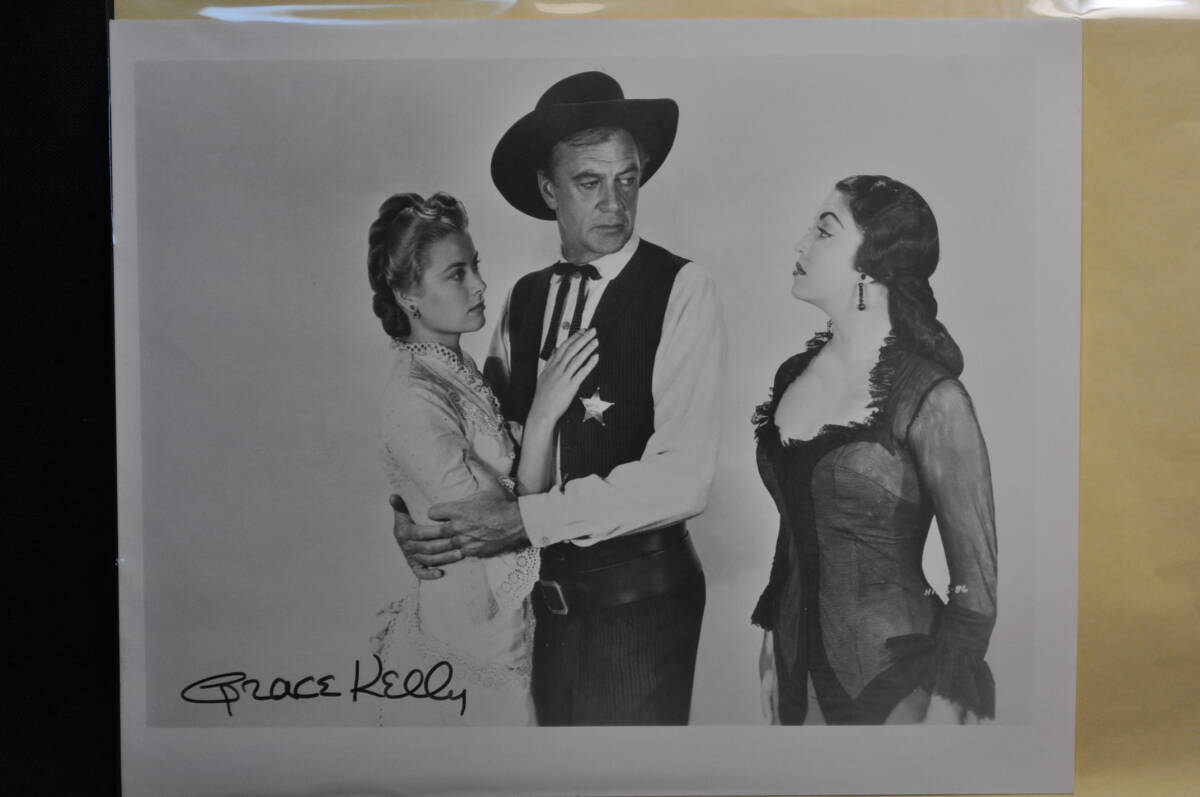 本物 直筆 サイン グレース・ケリー 真昼の決闘の販促写真に ゲーリー・クーパー ケティ・フラド 約250x200ミリ 收藏