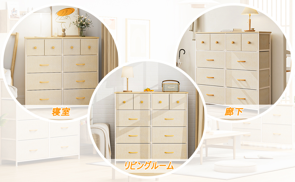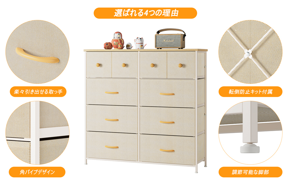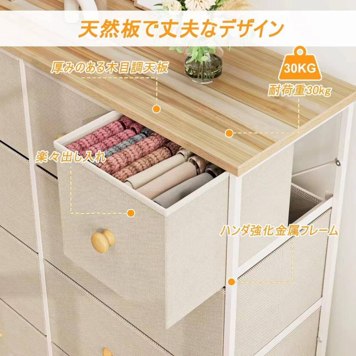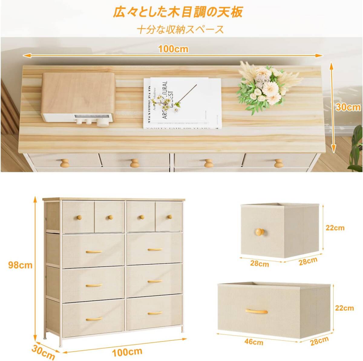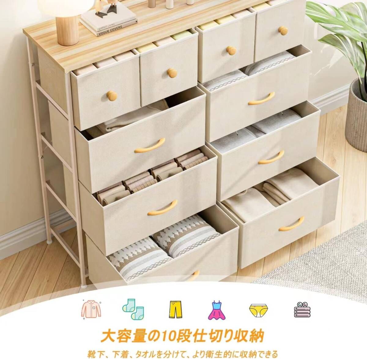 Nicehill チェスト タンス 収納チェスト オーガナイザー 収納ケース 衣類・キッズ・ベイビー用ワイドチェスト 4段10杯 ベージュ 收藏