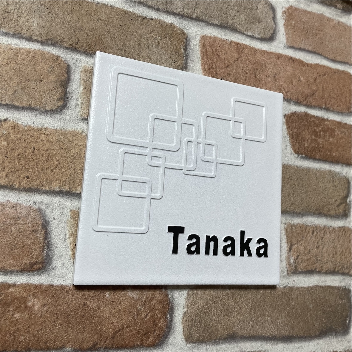 表札 見本品処分「Tanaka」150角タイル ネームプレート 二層浮き彫り 風水 收藏