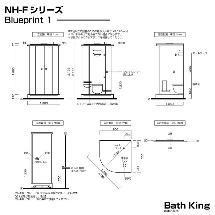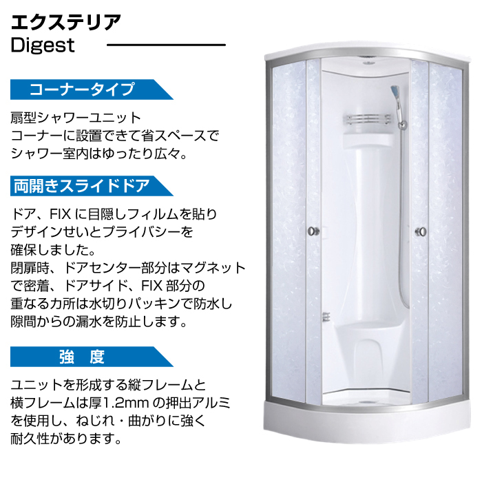 【サイズ】幅:900mm×奥行き:900mm×高さ:2160mm(換気扇含む)(※オプション天井板使用時:高さ2050mm)