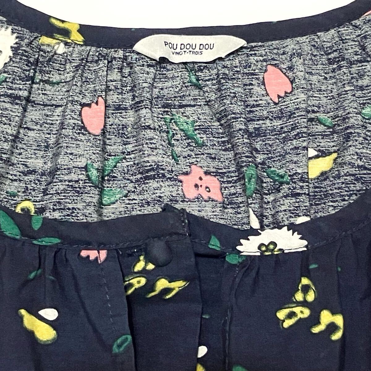 【送料無料】POU DOU DOU プードゥドゥ★花柄 長袖シャツワンピース ネイビー 紺 收藏