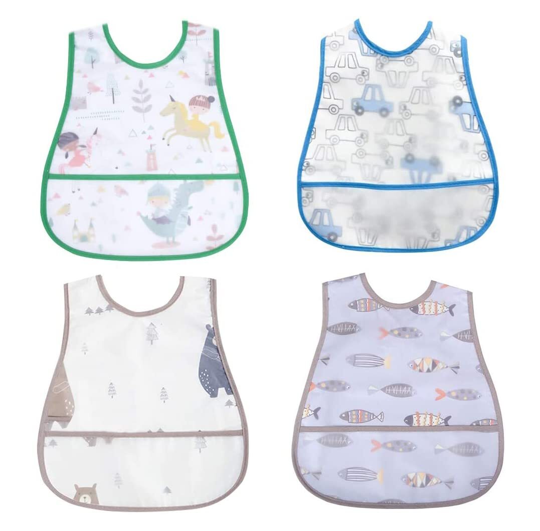 【在庫処分】軽量 名前入 洗いやすいと乾きやすい 汚いにくい スタイ 4枚セット 離乳食 保育園 ベビー ブルー 食事用エプロン 收藏