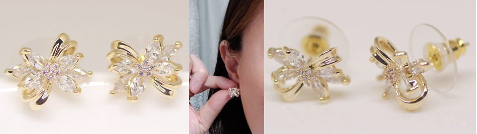 18K RGP ゴールド ダイヤ CZ リボン ピアス gp5525