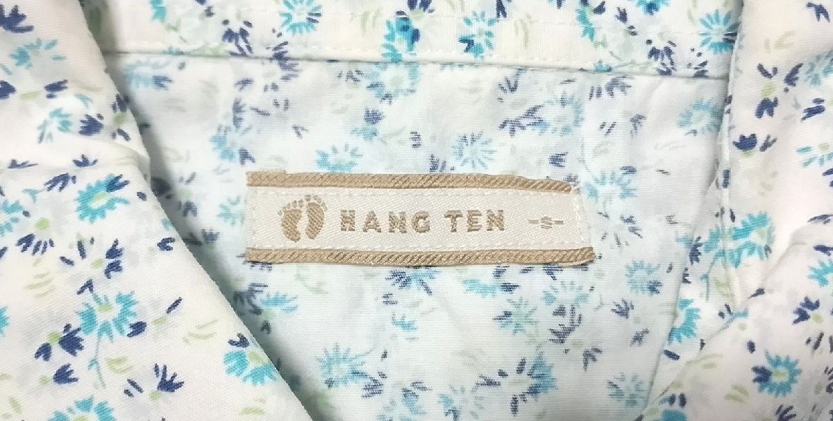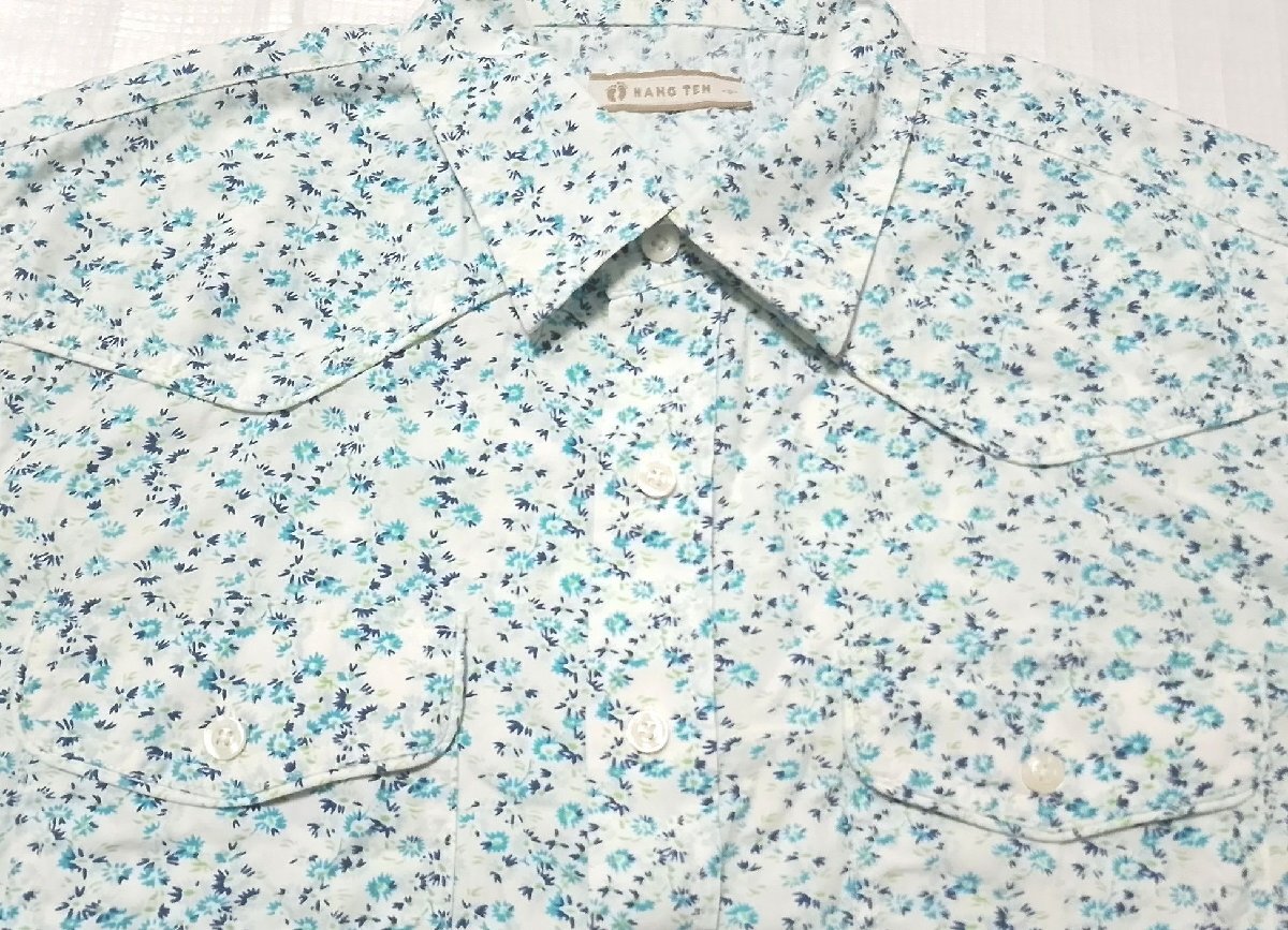★ HANG TEN ハンテン 90S 2ポケ・半袖シャツ 小花柄 白緑紺 Sサイズ 收藏