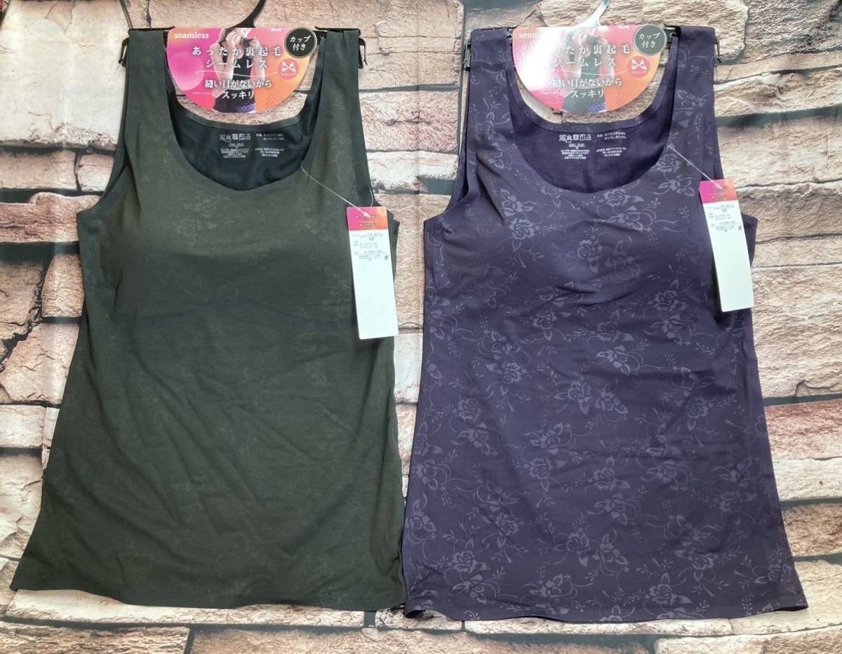 縫い目が無いのでアウターにひびきにくい!圧着機能で素肌にフィット!快適・裏起毛カップ付きタンクトップ(2色から)1枚 收藏
