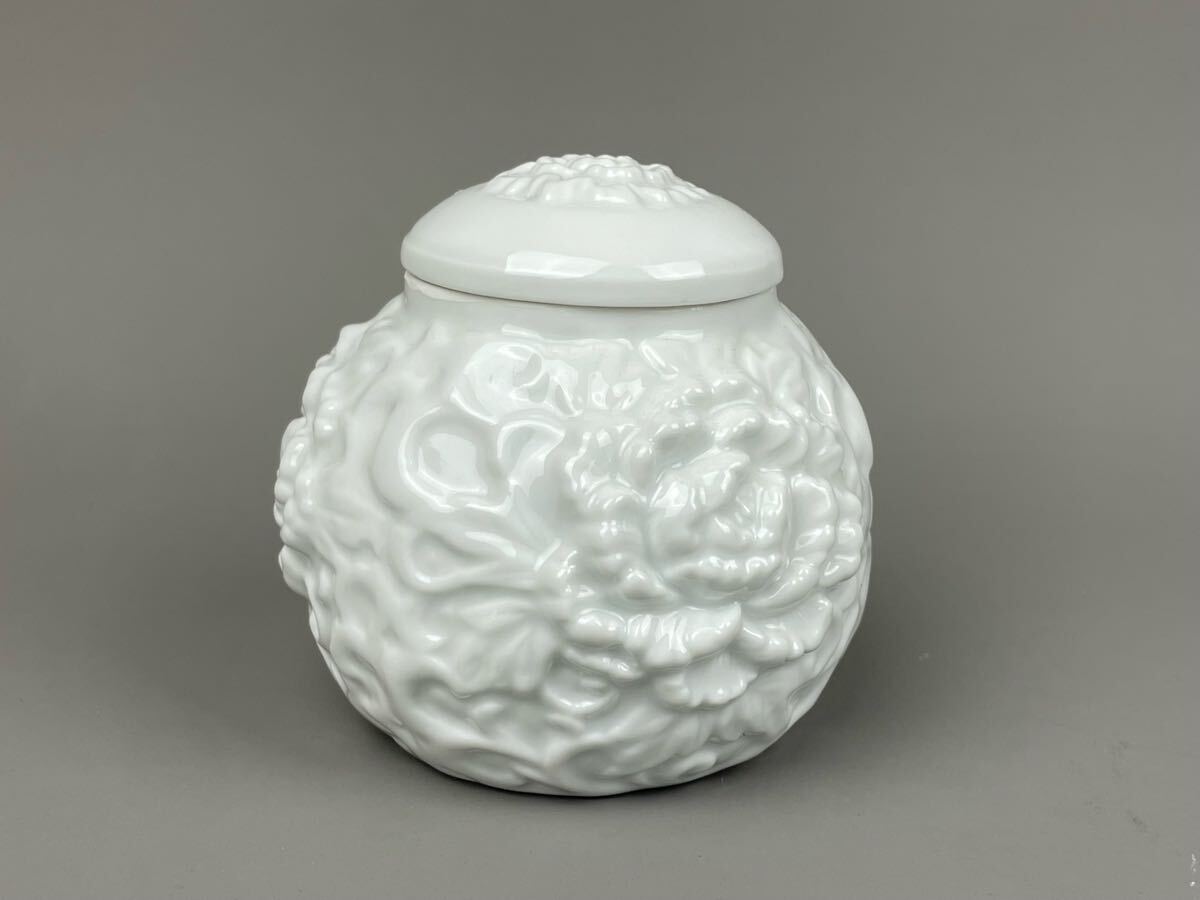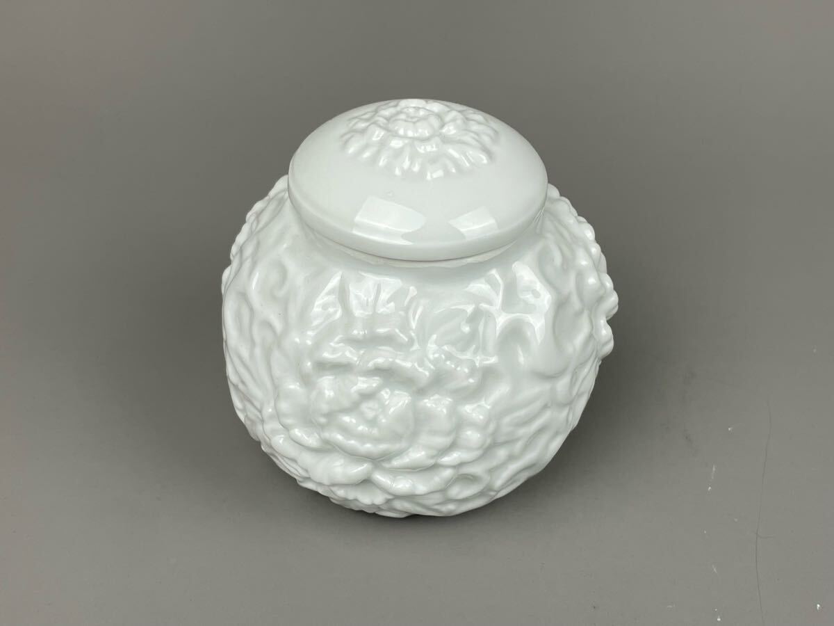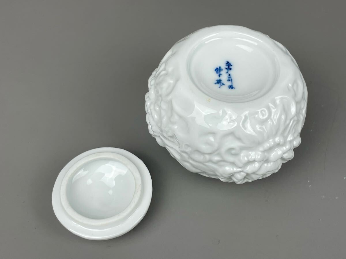 平戸 三川内焼 白磁 菊 浮彫 蓋物 小物入れ 香合 香炉 置物 茶心壺 茶道具 茶入 茶壺 茶缶 小壺 作家物 在銘 茶室 茶の間 飾り物 收藏
