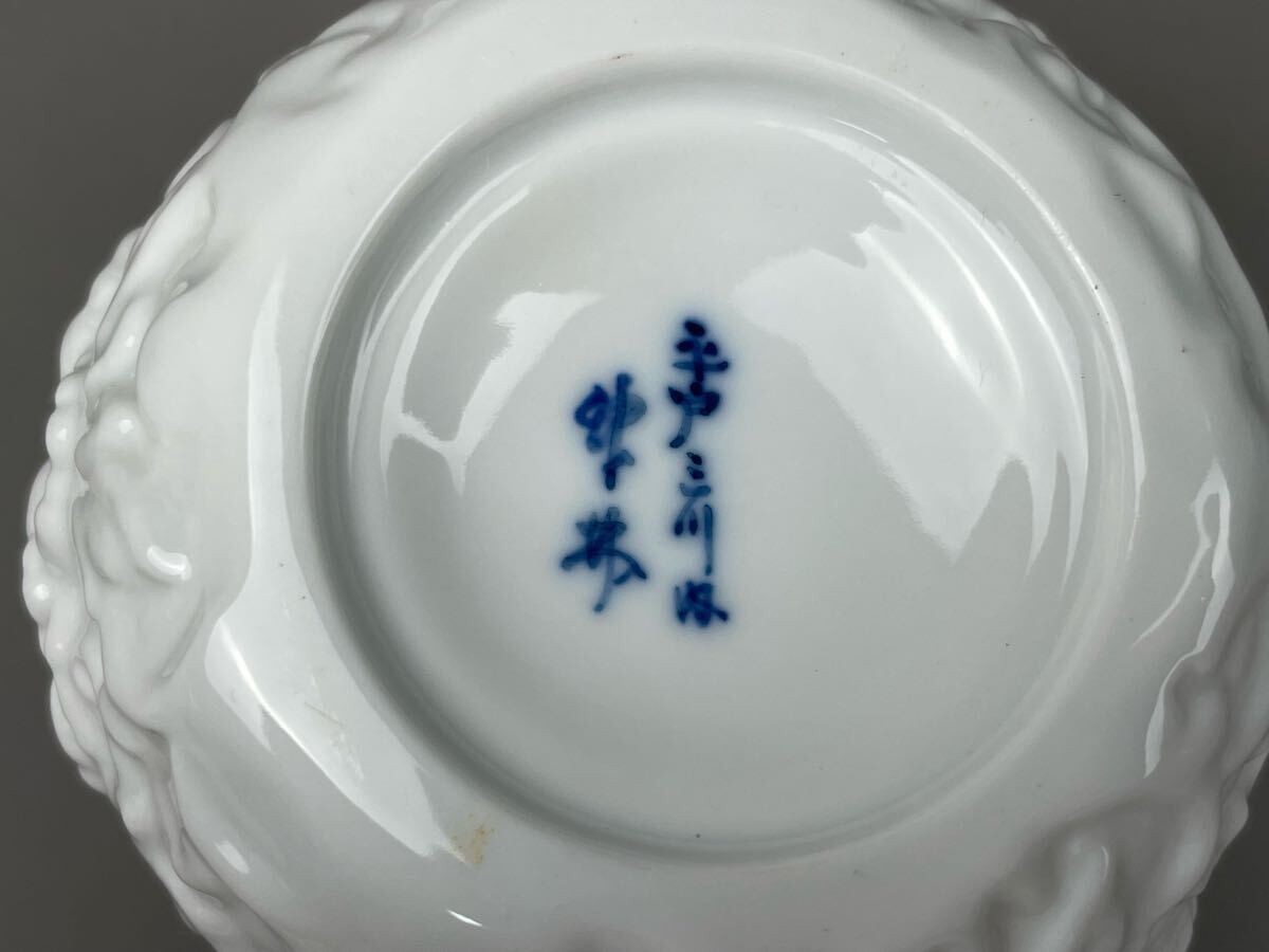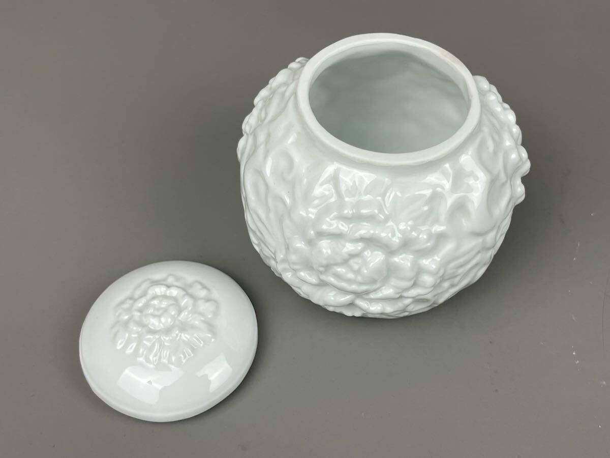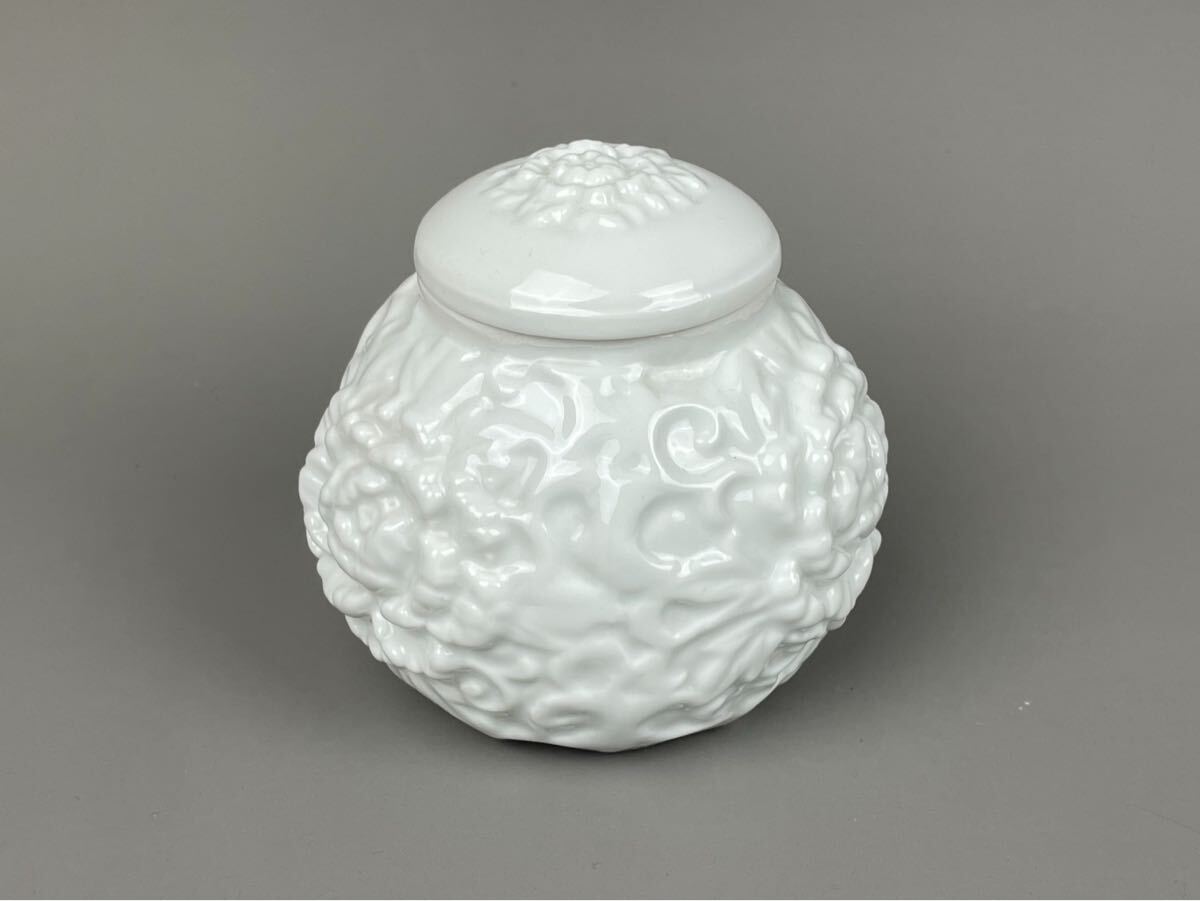 平戸 三川内焼 白磁 菊 浮彫 蓋物 小物入れ 香合 香炉 置物 茶心壺 茶道具 茶入 茶壺 茶缶 小壺 作家物 在銘 茶室 茶の間 飾り物 收藏