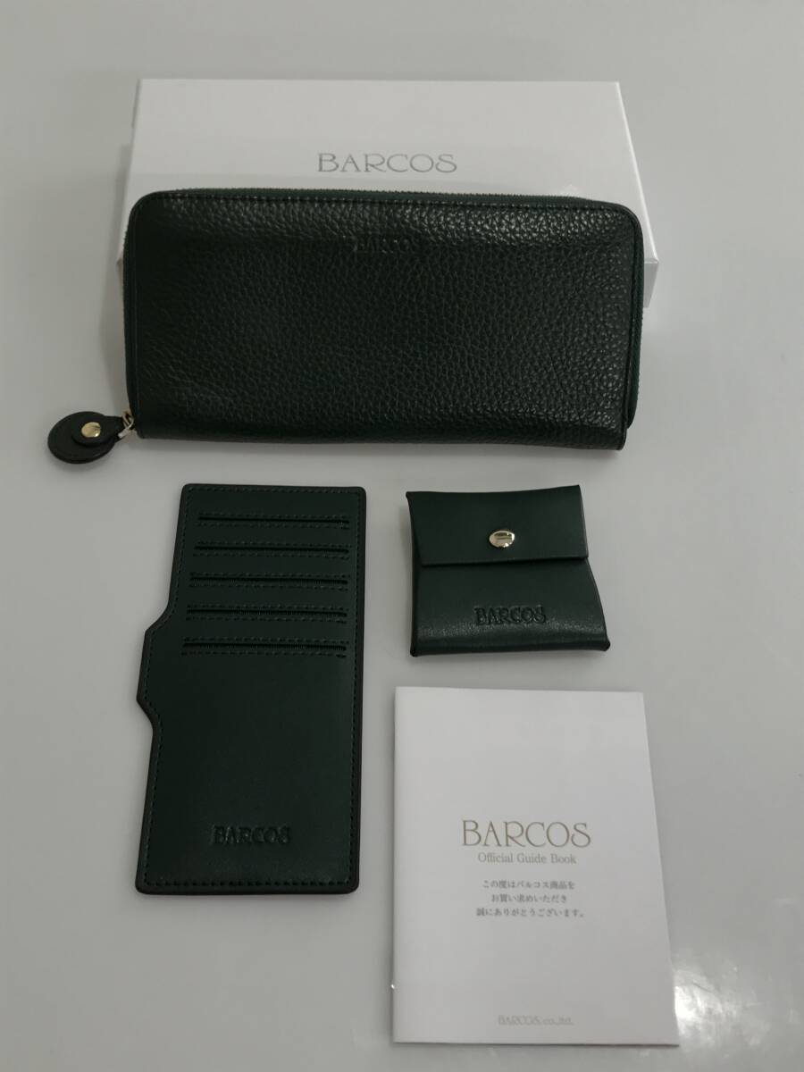 DG8350 BARCOS 長財布 カード入れ 小銭入れ 3点セット ラウンドファスナータイプ ダークグリーン レザー 箱あり 收藏