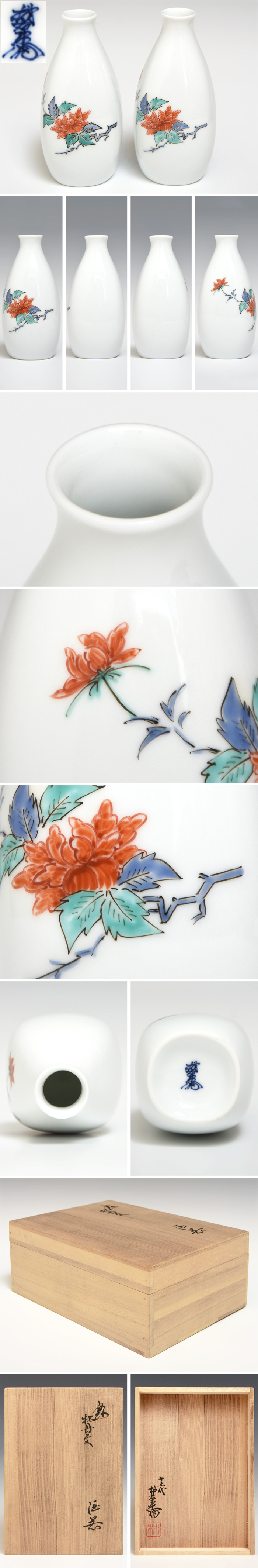 十三代 酒井田柿右衛門 (造) 錦牡丹文 酒器セット 徳利一対 盃5客揃 共箱 伊万里 徳利 猪口 懐石道具 |