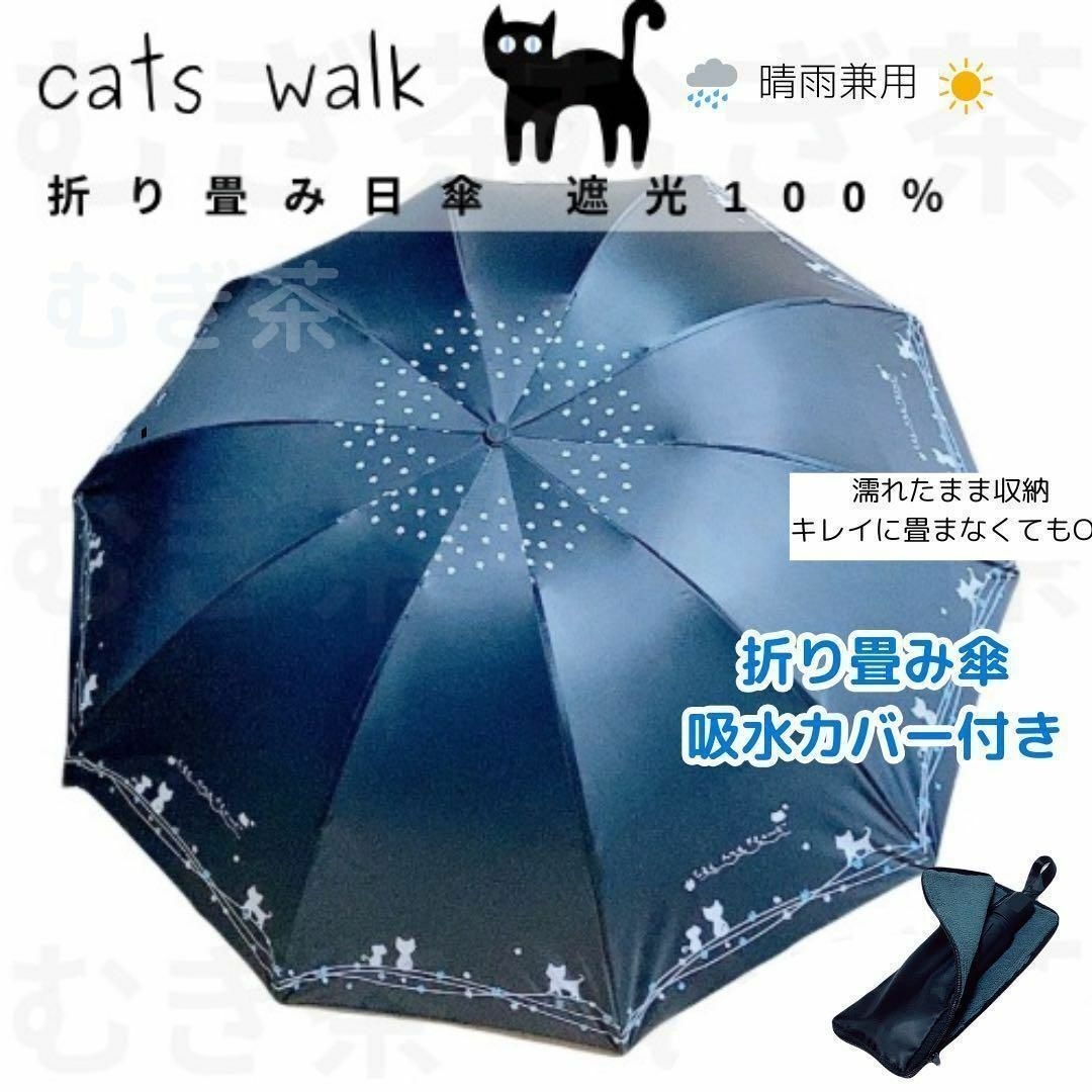シックな黒 晴雨兼用・完全遮光!10本骨 折り畳み日傘&吸水カバー付き 收藏
