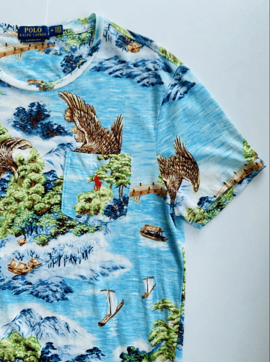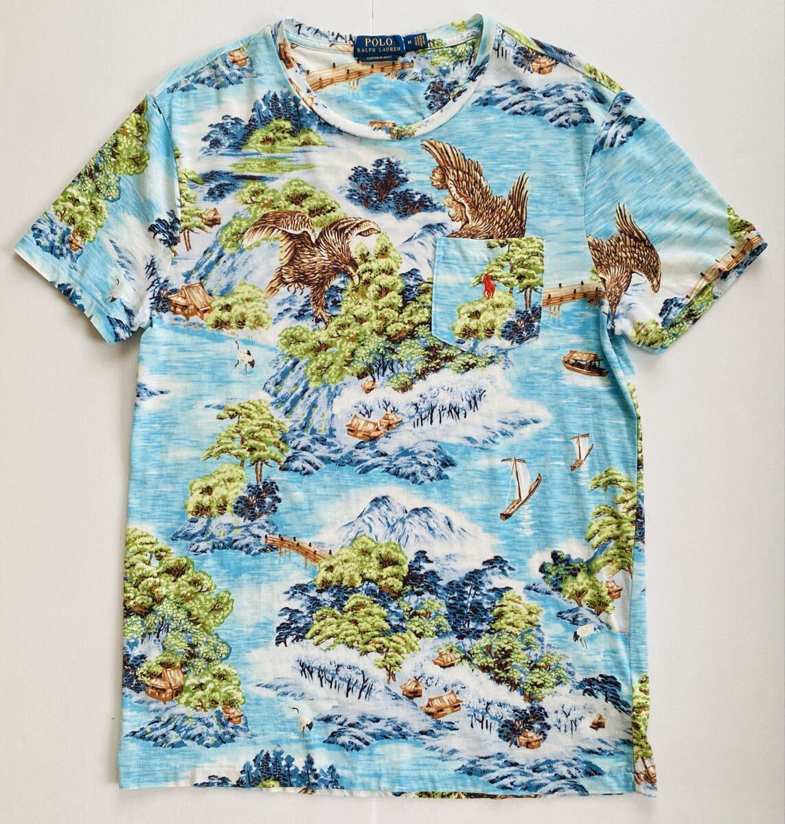 Polo Ralph Lauren ポロラルフローレン 総柄 Tシャツ カットソー メンズ M 和柄 鷹 松 收藏