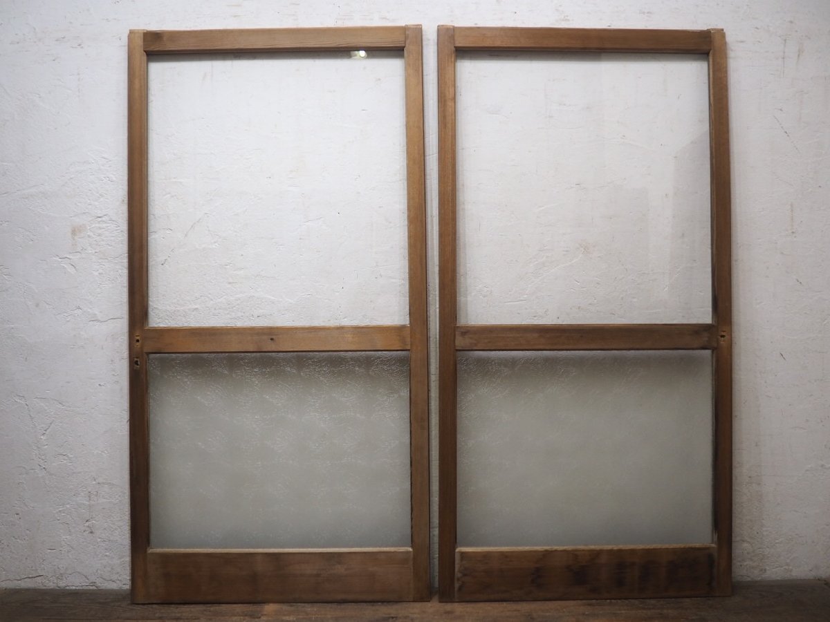タW1794◆(2)【H176,5cm×W90,5cm】×2枚◆ゆらゆらガラス入りの古い木枠引き戸◆古建具 波ガラス戸 玄関戸 レトロ ヴィンテージM松 收藏