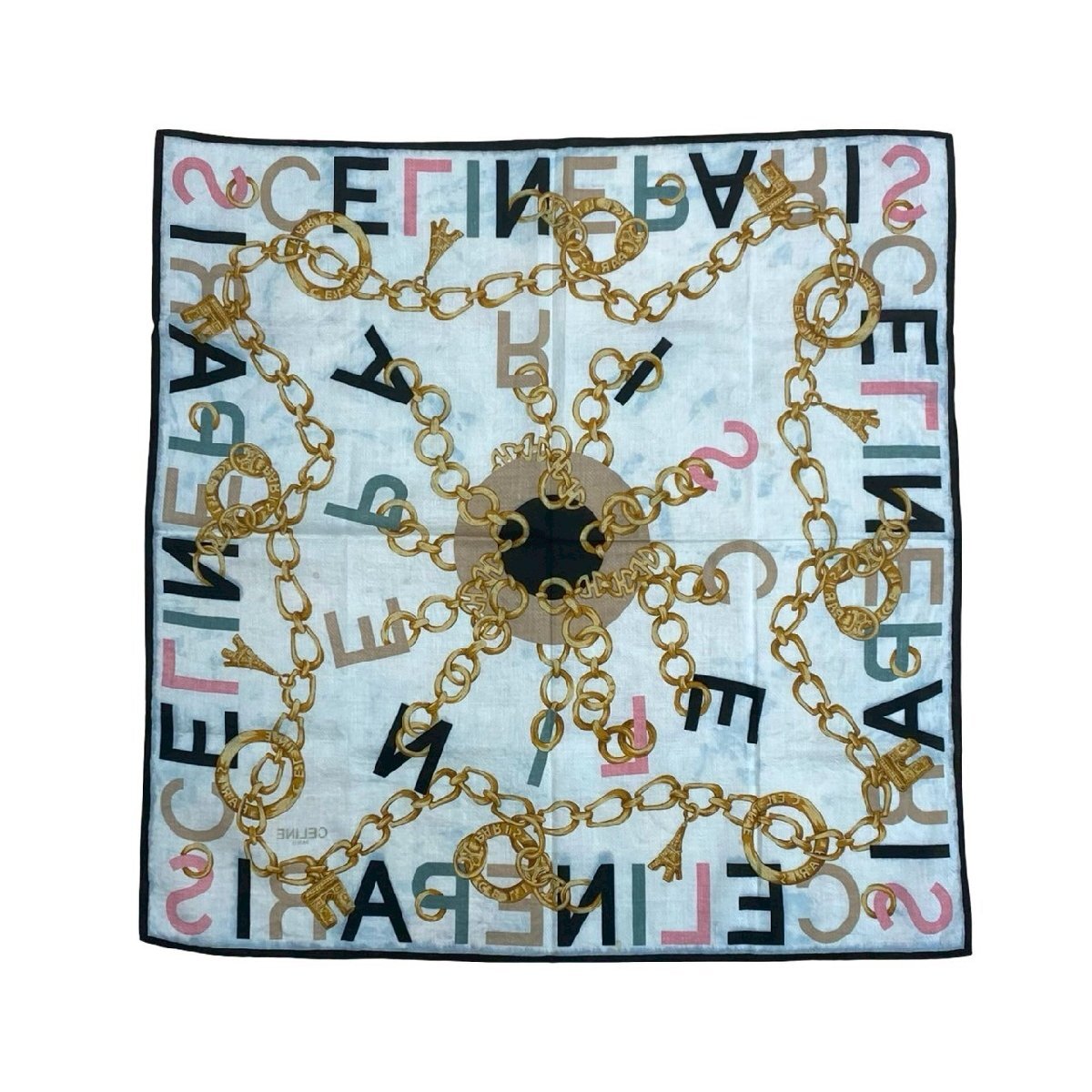 極 美品 CELINE セリーヌ ヴィンテージ ロゴ チェーン 総柄 コットン スカーフ ハンカチ マルチカラー 260-4 收藏