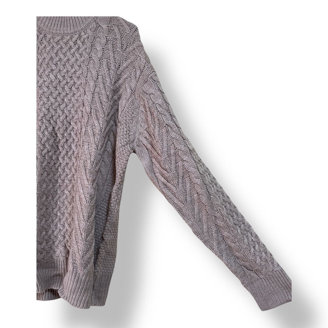 [JIGGYS SHOP]のアランニットセーター、Lサイズのミックスベージュです。ケーブル編みで厚手の暖かい素材を使用し、Vネック・クルーネック・タートルネックのスタイルに合わせやすいデザイン。秋冬にぴったりで、シンプルかつ上品な色合いはペアコーデやユニセックスでも楽しめます。大人カジュアルに最適で、着回しやすく低刺激の素材で快適に着用できます。