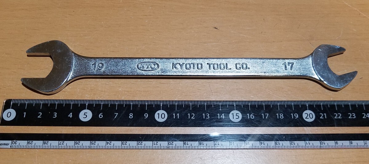 190-5 KTC 17-19 薄口スパナ 中古品 両口スパナ タペット レンチ 厚さ約4.6mm 昭和レトロ 收藏