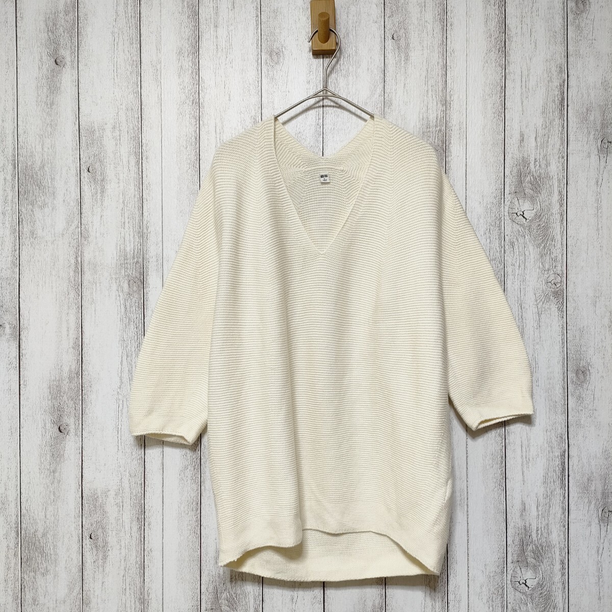 UNIQLO ユニクロ (L) 3Dコットン コクーンVネックセーター 7分袖 收藏