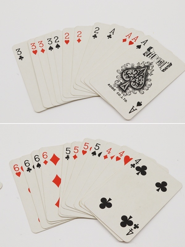 ジャンル:トランプ サイズ:縦8.3×横5.4㎝位 付属品:ケース スレ、キズ、汚れ、端に折れ跡などがあります。 ケースにスレ、キズがあります。 |