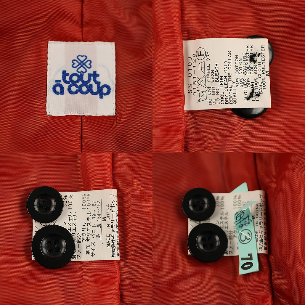 00’s tout a coup トゥ・ア・クー ファー取り外しハーフコート Mサイズ ブラック(ジャンク商品) 收藏