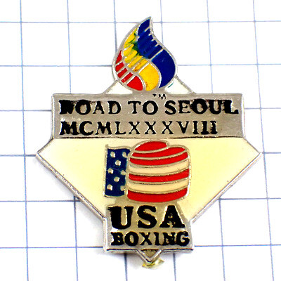 | "ピンバッジ・ソウル五輪アメリカ国旗ボクシング星条旗オリンピック/USAビンテージ中古品"の商品説明 | |