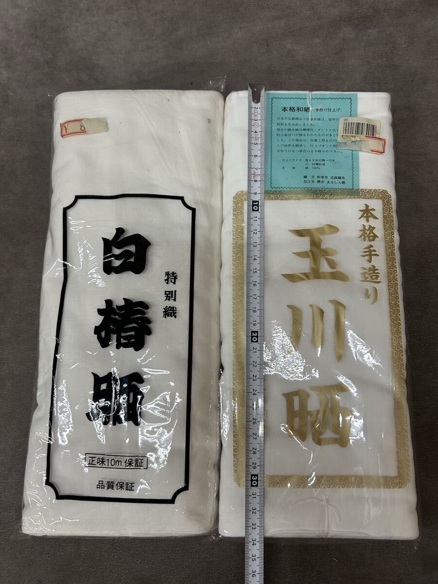 晒 2点セット さらし 綿100 白色 未使用 保管品 玉川晒 白椿晒 現状品 汚れあり 布 和装小物 おさえ 收藏