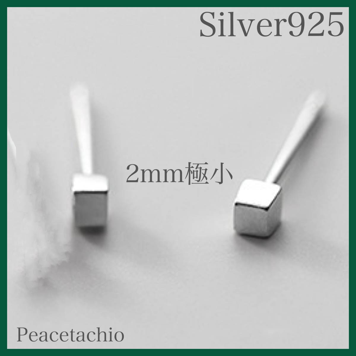 ピアス シルバー Silver925 四角 クール 2mm 小さい 小ぶり ミニサイズ ミニピアス プチギフト 贈り物 専用収納ケース付 收藏