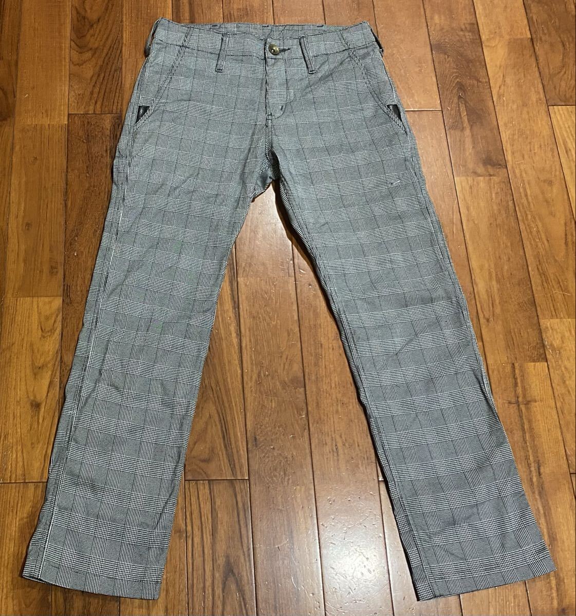 エドウィンのストレッチパンツ、KX0001です。USEDで人工皮革パッチにダメージありますがその他の状態は良いです(10段階中7程度)。生地はストレッチ入りで綿98%、ポリウレタン2%です。ジッパーフライです。正規品です((株)エドウイン、ベトナム製)。サイズはSでウエストは重ねずに平置きで約73cm、ヒップ約99cm、股上約25cm、股下約69cm、股下15cmのふともも部分約46cm、裾まわり約37cm、重量約510gです。発送はゆうパケットポストになります。