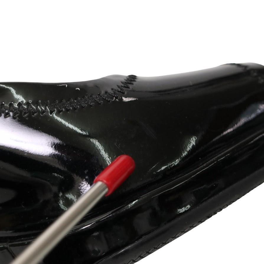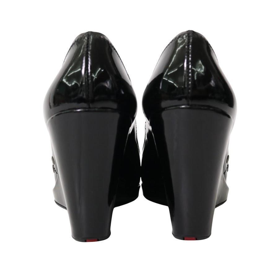 PRADA プラダ パンプス ウェッジソール オープントゥ 黒 ブラック レザー パテントレザー ロゴ型押し レディース 24.5cm シューズ 靴 收藏
