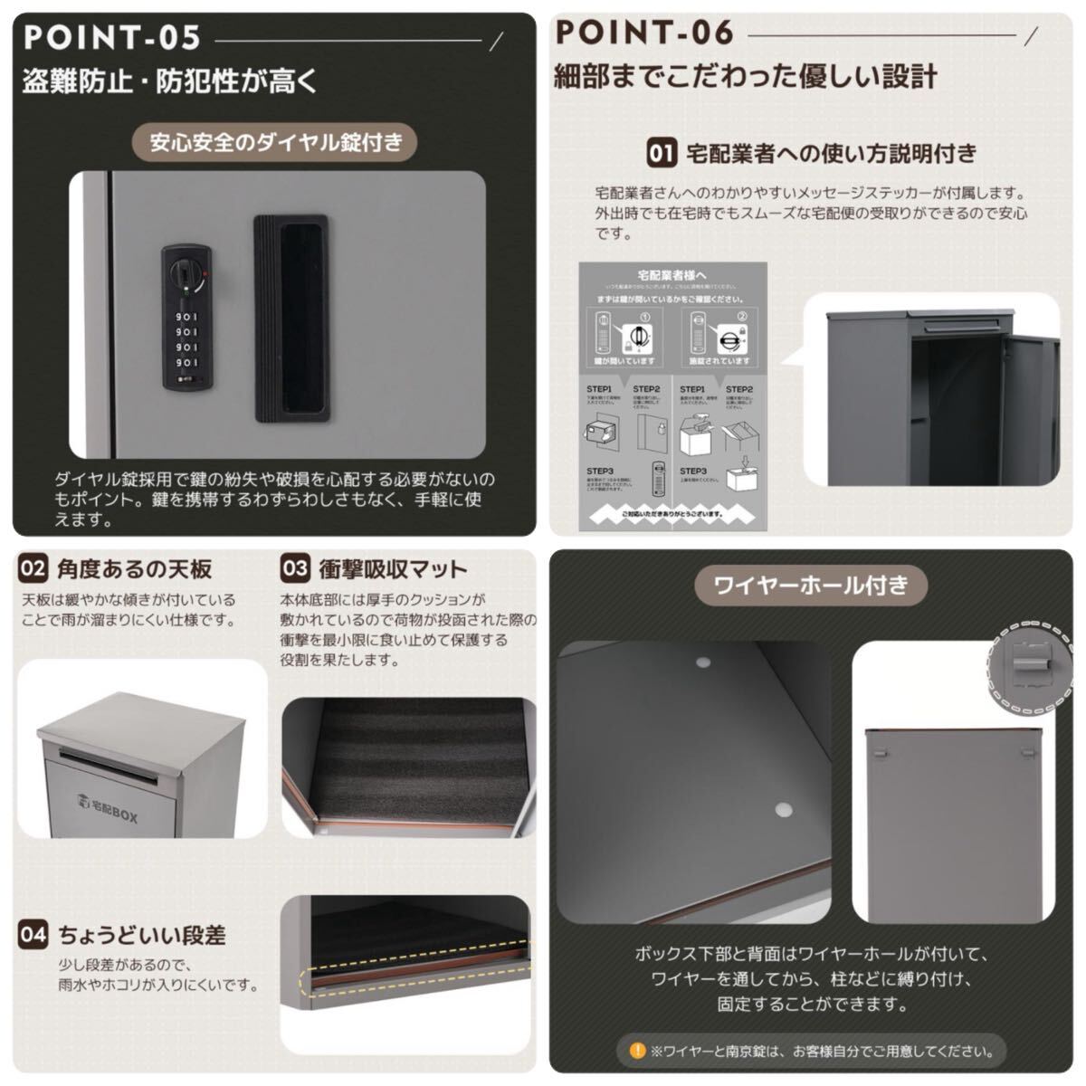 新品 宅配ボックス 据置型 大容量 置き配 防錆 屋外収納 玄関 グレー 收藏