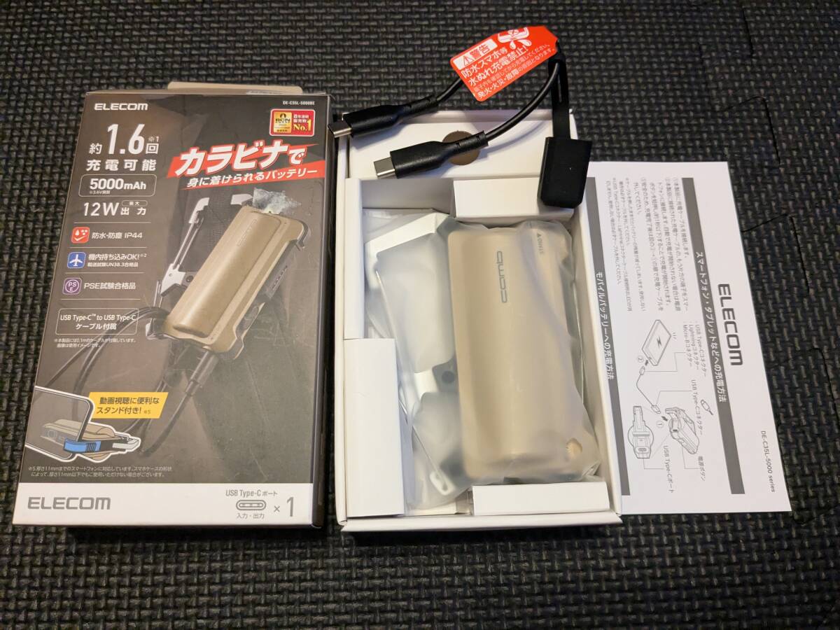 ◎0710u0638 エレコム(ELECOM) モバイルバッテリー カラビナ一体型 5000mAh 12W Type-C 1ポート 防水 防塵 IP44 ベージュ DE-C35L-5000BE