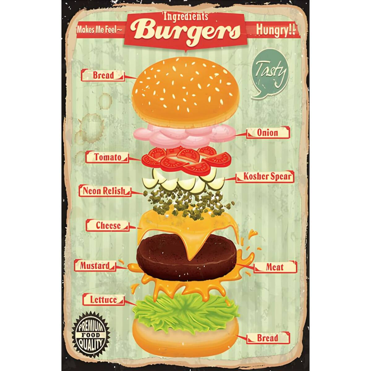 新品 ハンバーガー レシピ ポスター アメリカン カフェ風 インテリア ブリキ看板 收藏