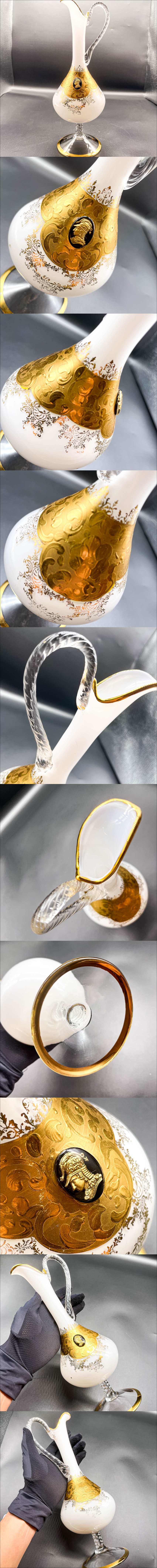 【ムラーノ】白色オパリン 金彩カメオ装飾 クリスタル デキャンタ Murano Opaline Glass Decanter イタリア製 アールデコ [SN101207] 收藏