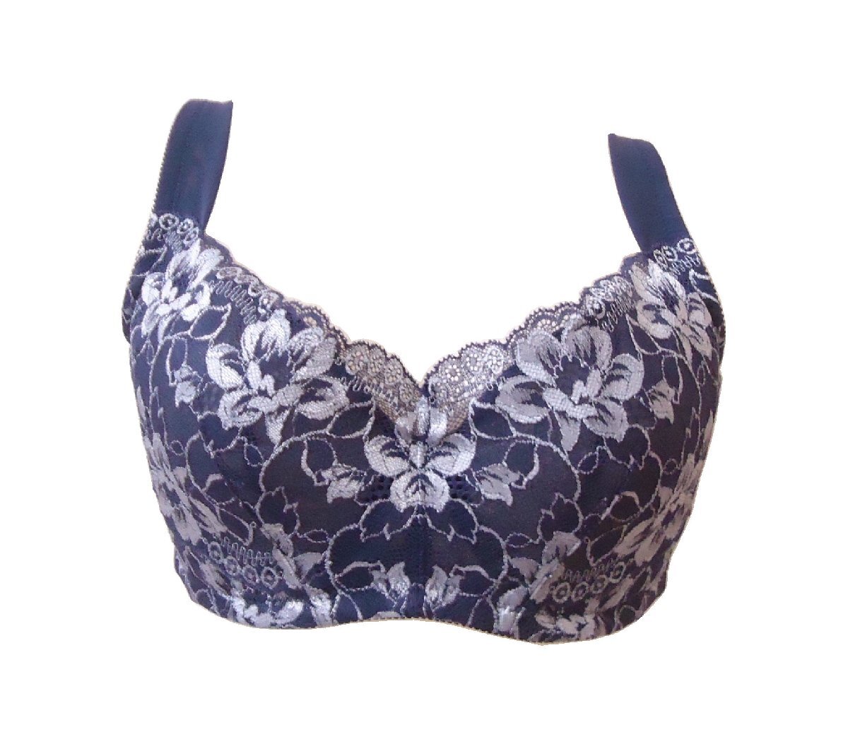 F90・ネイビー バストすっきりブラジャー ワイヤー入り 幅広ストラップ 脇高設計 リフトアップパネル 細見せ ブラジャー 新品 收藏