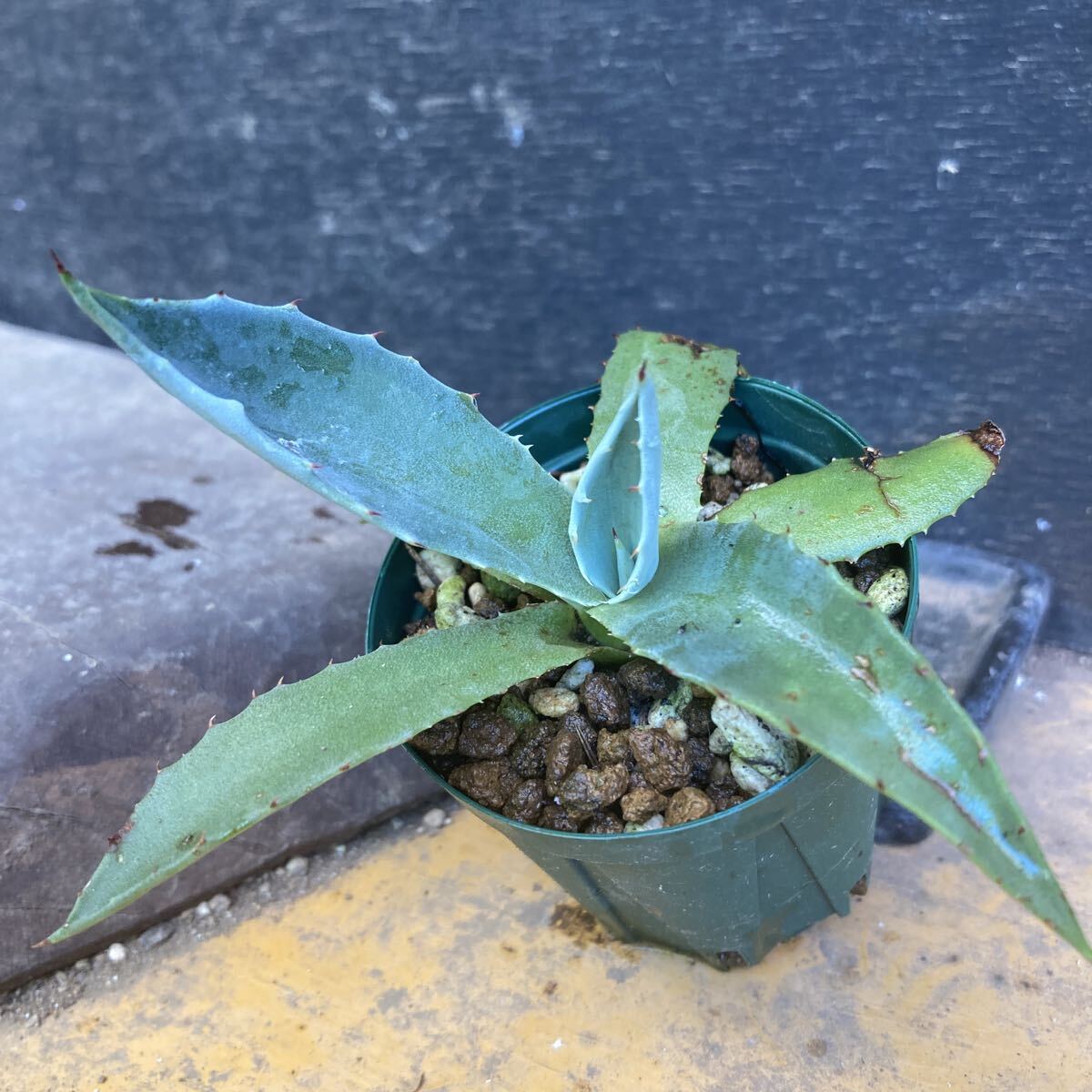 実生苗のアガベです。アオノリュウゼツラン、アガベアメリカーナというのは写真検索した結果出てきた名前です。我が家で発芽して数年育てています。同様の苗が複数あります。