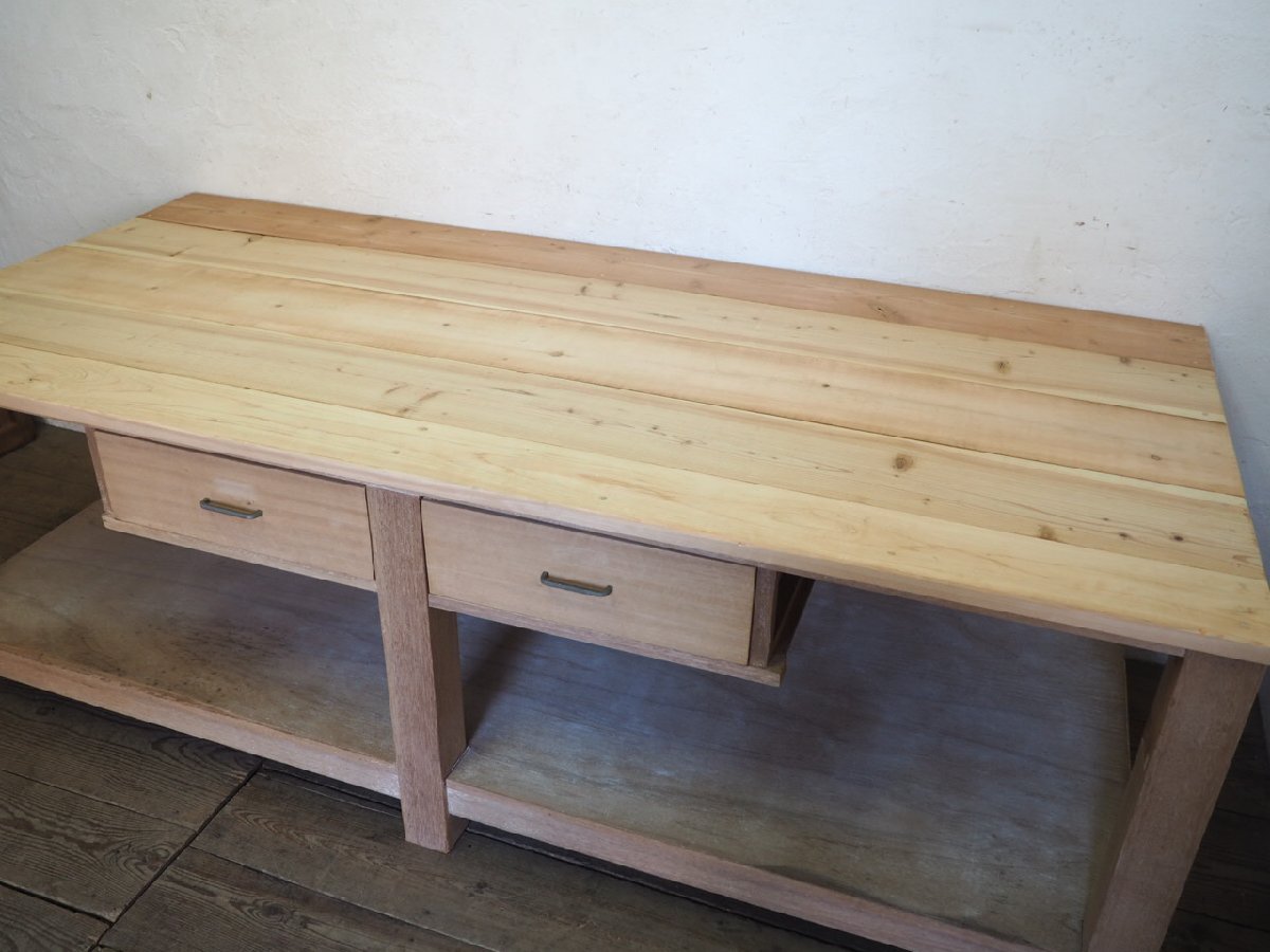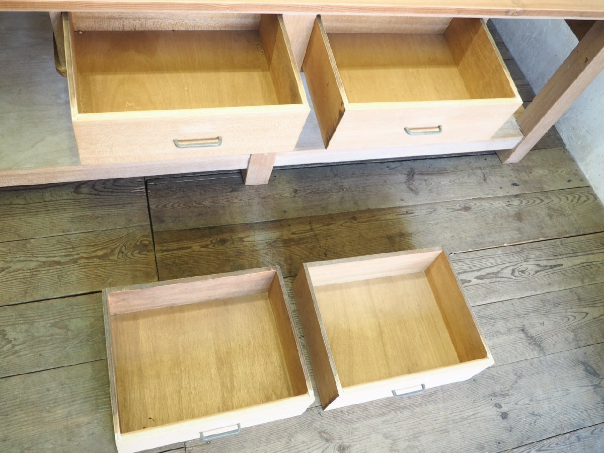タ荷C0582◆②天板W220cm×D100,5cm◆特大サイズ◆引き出し4杯◆ナチュラルな木味の大きい古い木製テーブル◆レトロ ビンテージX(ヤF)伊 收藏