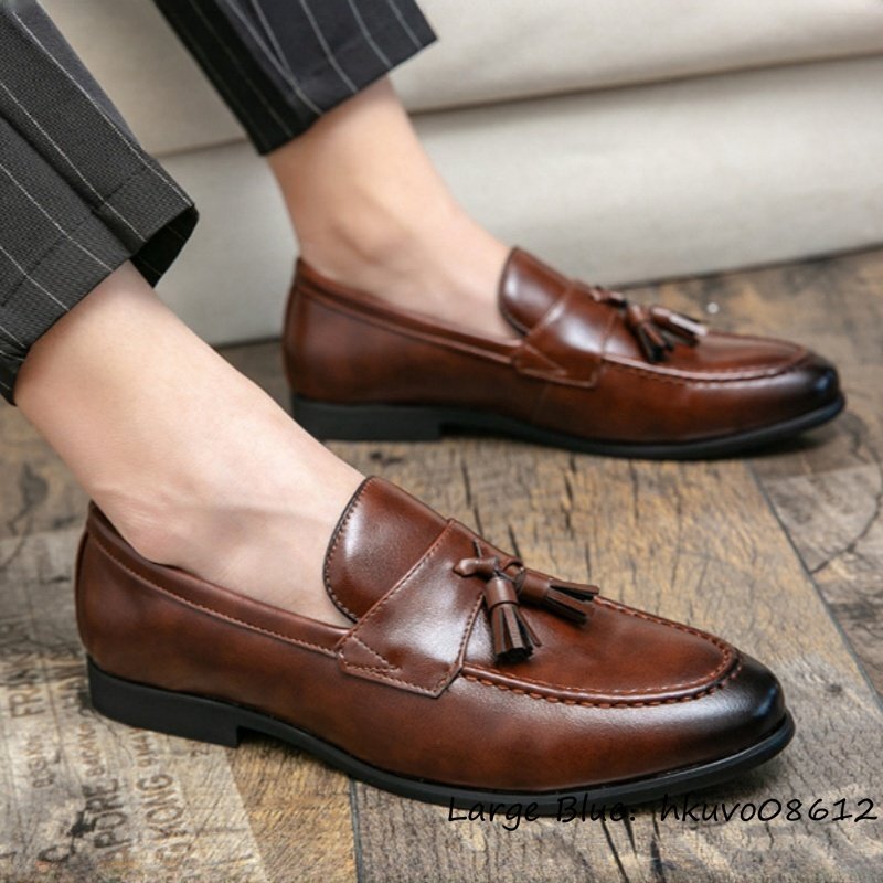 特売*新品 メンズ シューズ ローファー スリッポン イギリス風 手作り ビジネスシューズ 牛革レザーシューズ 通勤 革靴 ブラウン 27.5cm 收藏