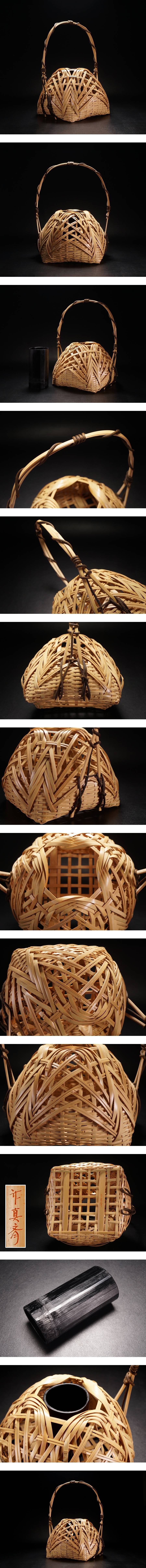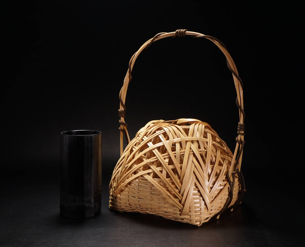 【asiya311】竹細工『竹真斎』竹編 宗全籠 花籠 花籃 在銘◆床の間飾り 花かご 華道具 生け花 蔵出し 古美術 即決 送料無料 收藏