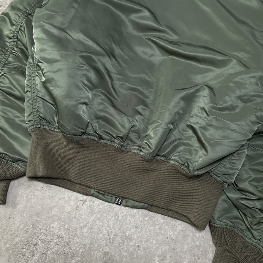 素材は、高密度で光沢とハリがあるALPHA INDUSTRIESのオリジナル生地“FLIGHT NYLON”を使用しています。サイズスペックは、MA-1 CORE SPEC(USスペック)をベースにしています。
